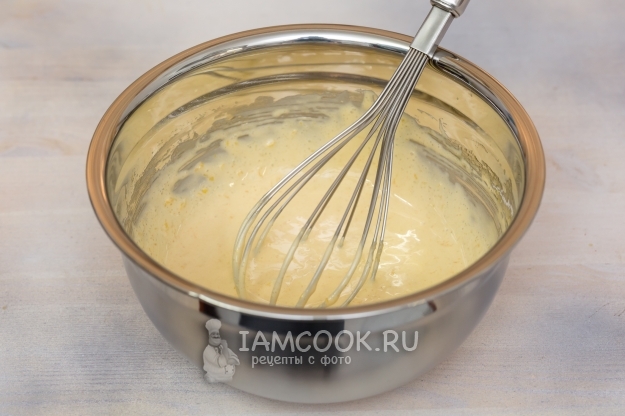В другой миске взбейте венчиком желтки с сахаром, мукой и цедрой.