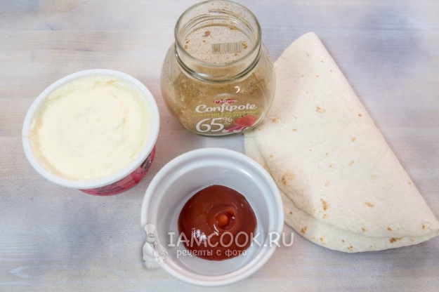 В миске смешайте кетчуп и сметану.