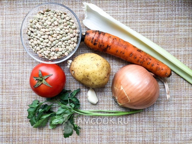 Для приготовления постного супа с чечевицей и овощами возьмите следующие продукты.
