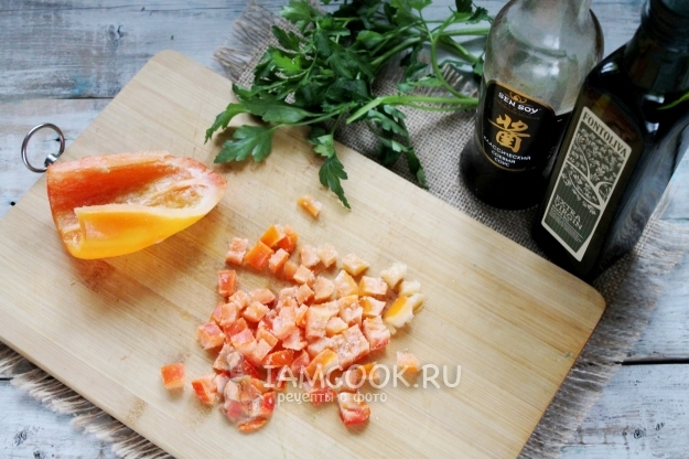 Нарежьте листочки петрушки и добавьте в сальсу. Перед подачей заправьте оливковым маслом.