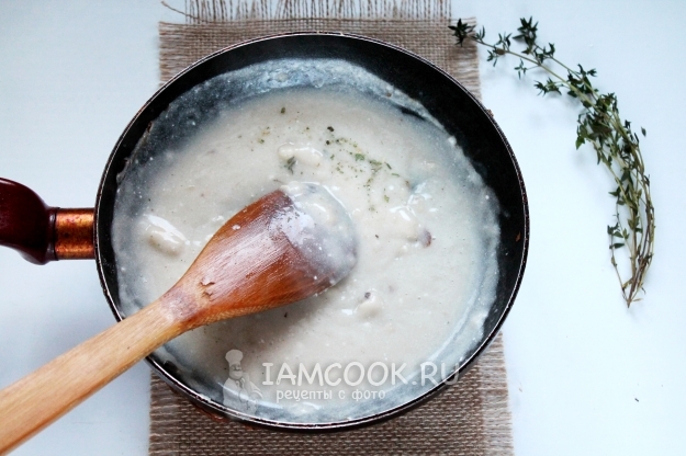 Приготовьте обычный сметанный соус: чуть подсушите на сухой сковороде муку и разведите ее водой, добавьте сметану, посолите по вкусу.