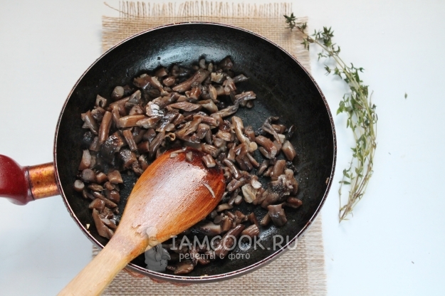 На той же сковороде обжарьте грибы, жидкость должна полностью выпариться.