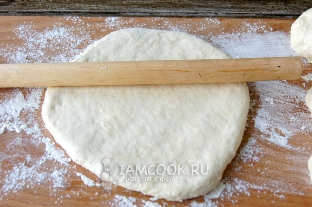 Раскатала в пласт. Диаметр моей сковороды - 26 сантиметров, но можно и больше, тогда хачапури будут тоньше.