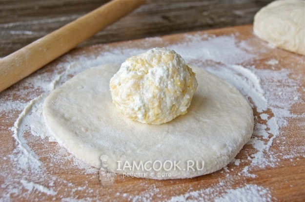 Каждую часть скатала в шар, затем слегка раскатала, в центр поместила начинку.