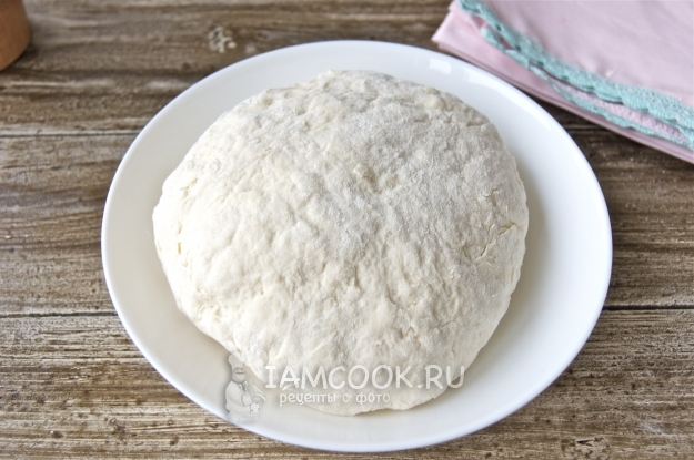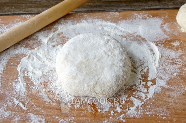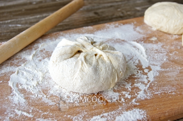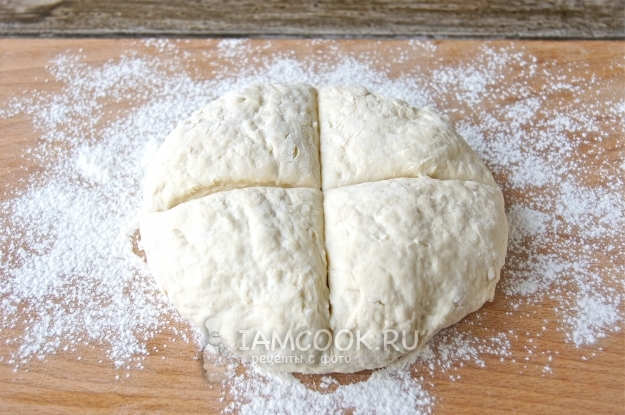 Припылила рабочую поверхность мукой, выложила тесто и разделила на 4 части.