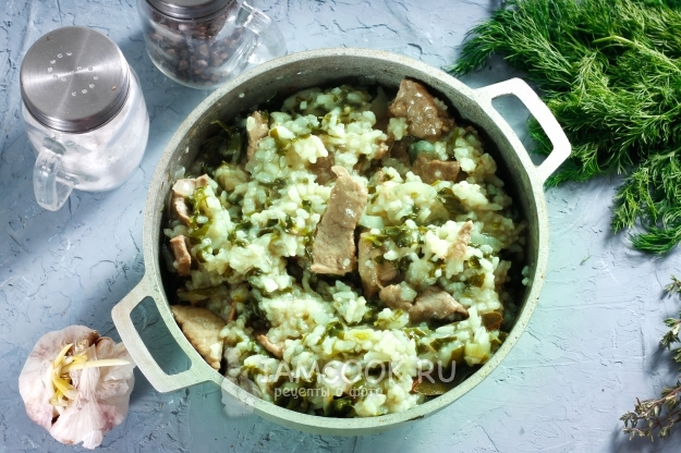 Затем выключите нагрев, перемешайте содержимое казана, накройте крышкой и оставьте для пропаривания на 10-15 минут.