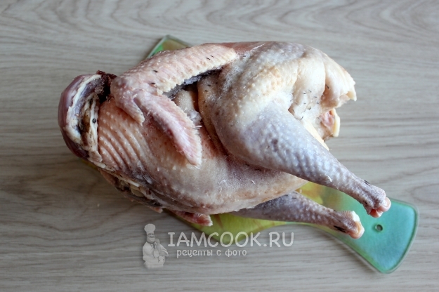 Тушка цесарки по размеру и весу примерно такая же, как и куриная, но мясо потемнее, особенно у грудки. В магазинах цесарок мне не попадалось, покупаю у частников/фермеров.