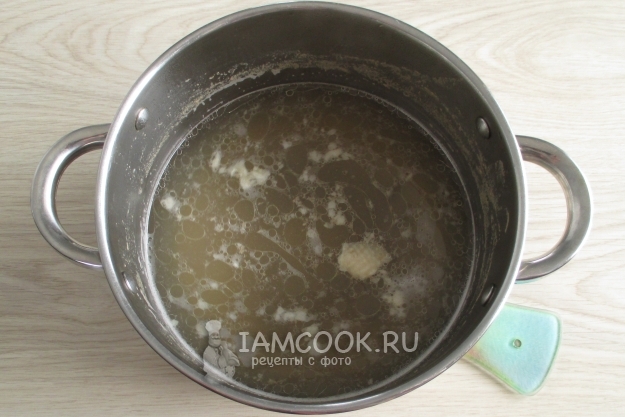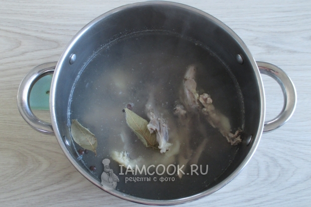 Мясо нужно будет снять с костей и затем вернуть в готовый суп.