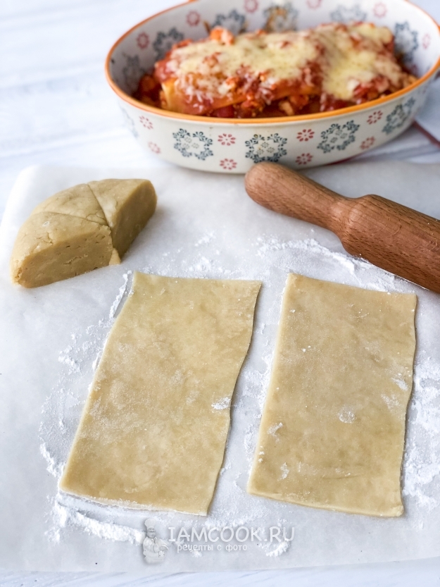 Вырежьте прямоугольники нужного вам размера. Всё, тесто для лазаньи готово.