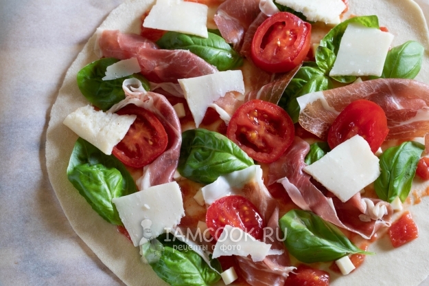 Ещё в этой пицце есть помидоры и, как правило, сырокопчёная ветчина прошутто, и пармезан, и моцарелла. В отношении последних трёх ингредиентов у пиццайол единства не наблюдается, там уж кто во что горазд.