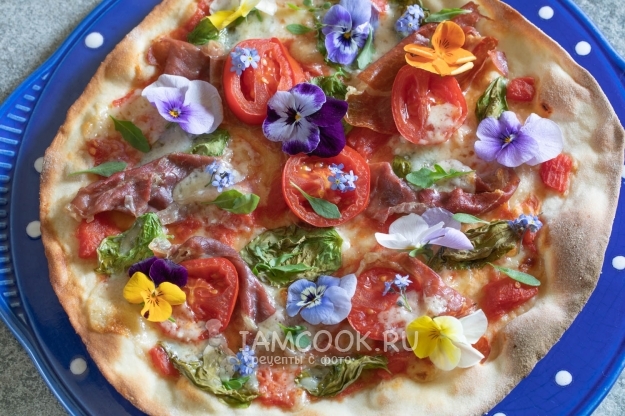 Ну, и посыпаем её после извлечения из духовки рукколой и цветочками.