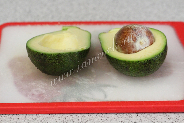 Авокадо аккуратно разрежем посередине.