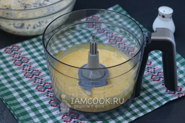 Спустя время в чашу блендера выложить желтки, соль, сахар и ванилин. Вот здесь я увеличила количество сахара и сразу добавила 100 г, вместо 50, указанных в рецепте.