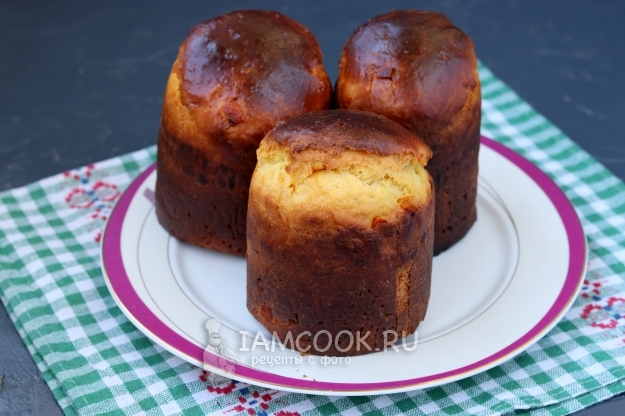 Выпекать куличи при 180 градусах от 25 до 40 минут, время зависит от размера куличей. Ориентируйтесь по своей духовке. Готовность проверить деревянной шпажкой. Остудить куличи немного в формах в положении лёжа, затем вынуть из форм и также лёжа накрыть полотенцем до полного остывания.