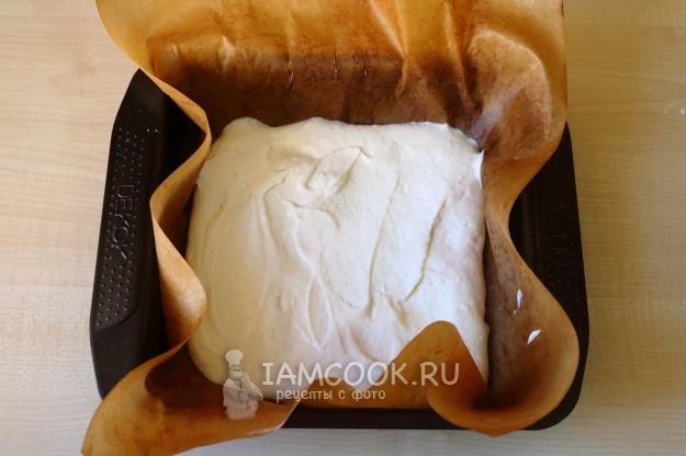 Перекладываем массу в форму, смазанную маслом либо застеленную пекарской бумагой, равномерно распределяя её.