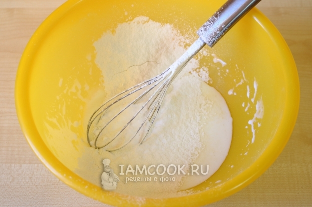 В миске соединяем кефир, соль и сахар, растительное масло. Перемешиваем.
