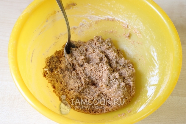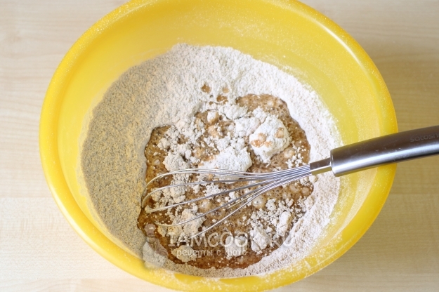 Перемешиваем венчиком до однородности сухих компонентов и вливаем жидкие.
