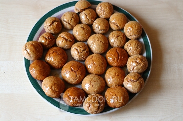 Формируем изделия руками, слегка присыпанными мукой, и выкладываем на противень, застеленный пекарской бумагой. Можно делать прянички чуть большего размера, чем у меня, но и выпекать их придется немного дольше.