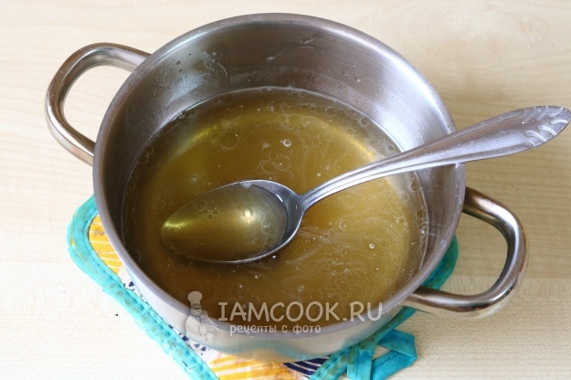 Нагреваем до растворения компонентов и получения однородной жидкости. Немного остужаем и добавляем растительное масло.