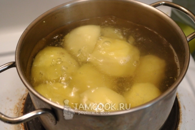 Картофель очищаем и закладываем в кастрюлю с водой. Подсаливаем и варим до готовности.