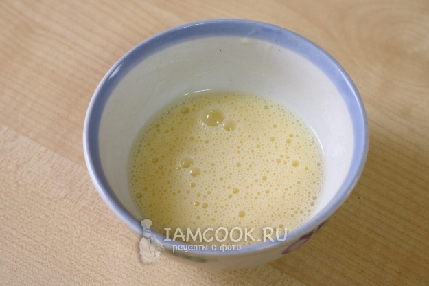 Другое яйцо разбиваем в пиалу и взбиваем вилкой до однородности.