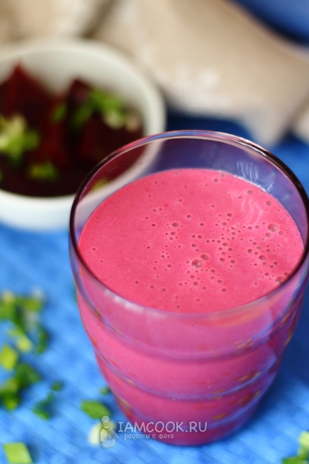 Смузи из свёклы и кефира готов! Подаём к столу в холодном виде. Приятного аппетита!