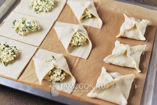 Защипните противоположные края теста в форме конвертиков.