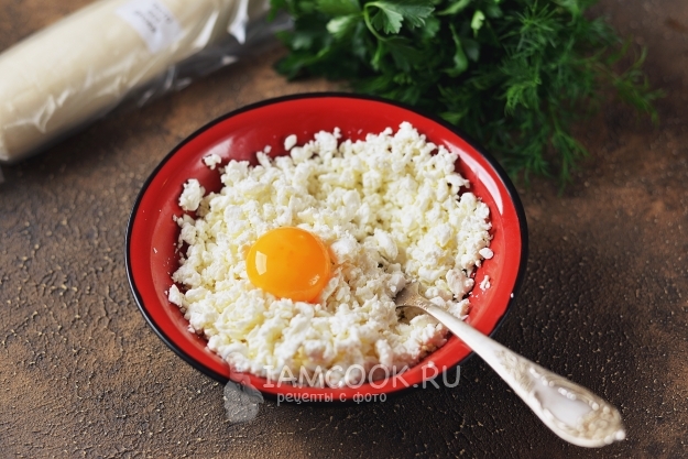 Творог положите в глубокую миску, разотрите его вилкой. Добавьте желток куриного яйца, еще раз хорошенько разотрите до однородности.