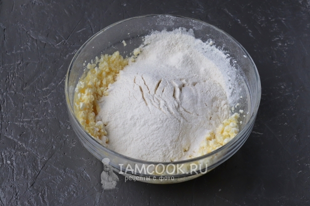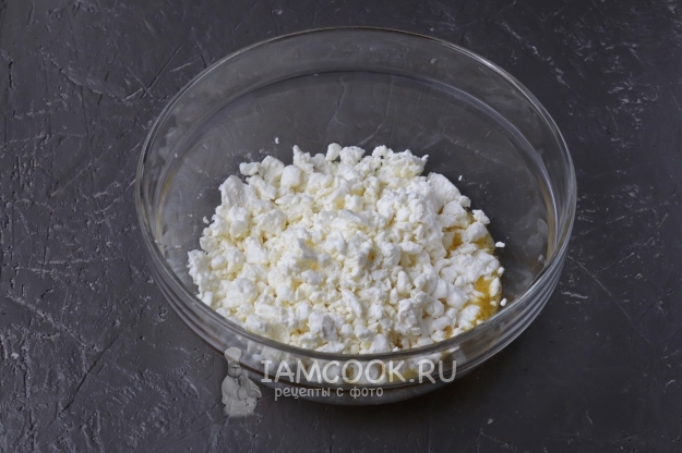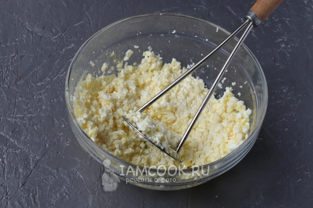 Зернистый творог перетереть через мелкое сито или растолочь толкушкой для пюре.