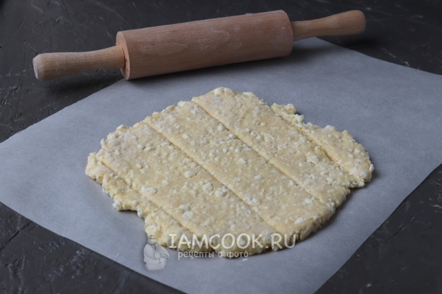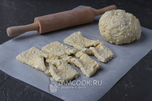 Разделить его на несколько частей, каждую из которых раскатать в пласт толщиной около 1 см.