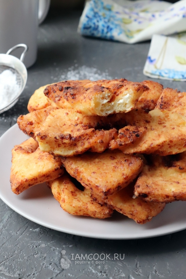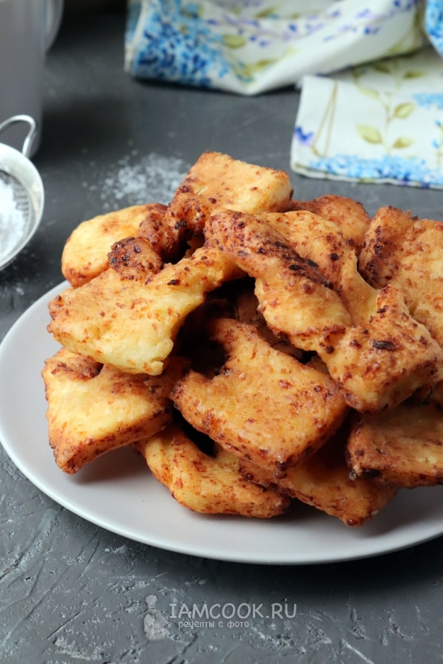 Вот и всё, вкусный, пышный хворост с творогом готов.