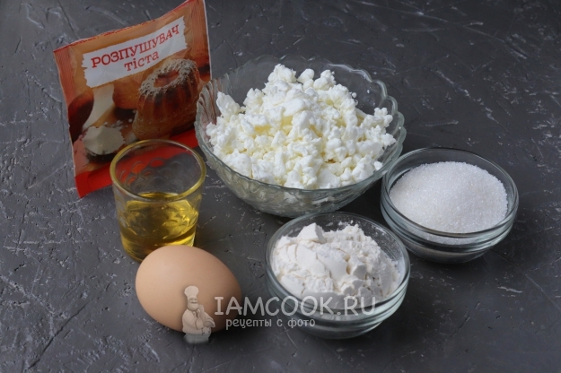 Подготовить продукты для приготовления пышного хвороста с творогом.