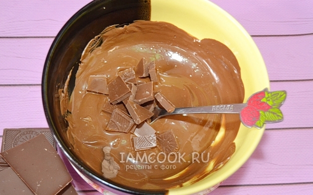 Перевернем форму и, постукивая по дну, сольем лишний шоколад.