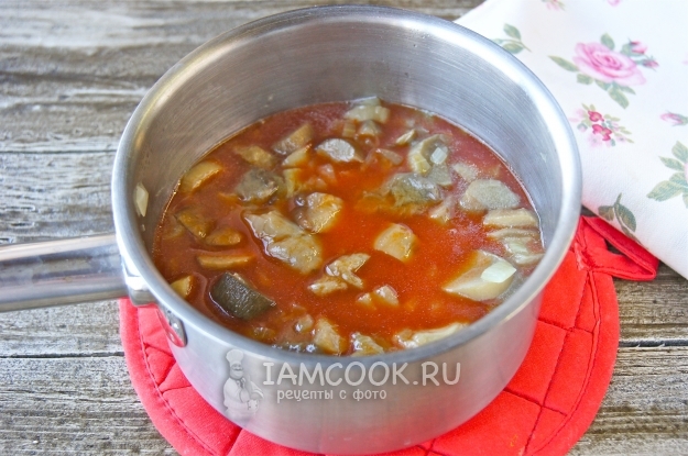 Томатную пасту разведите в воде и вылейте в сотейник.