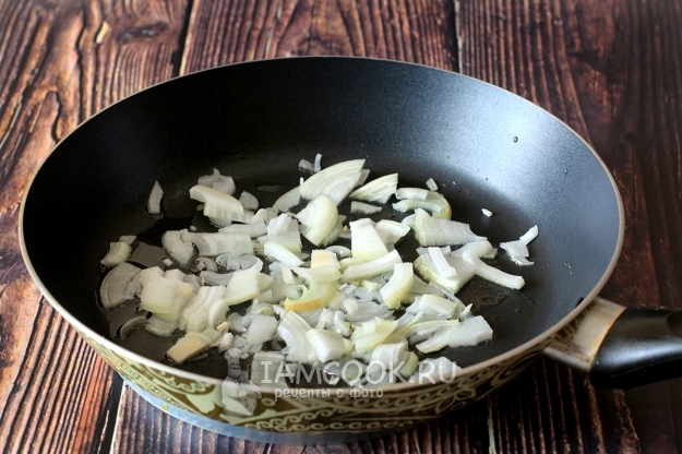 В небольшом количестве масла обжарьте репчатый лук.