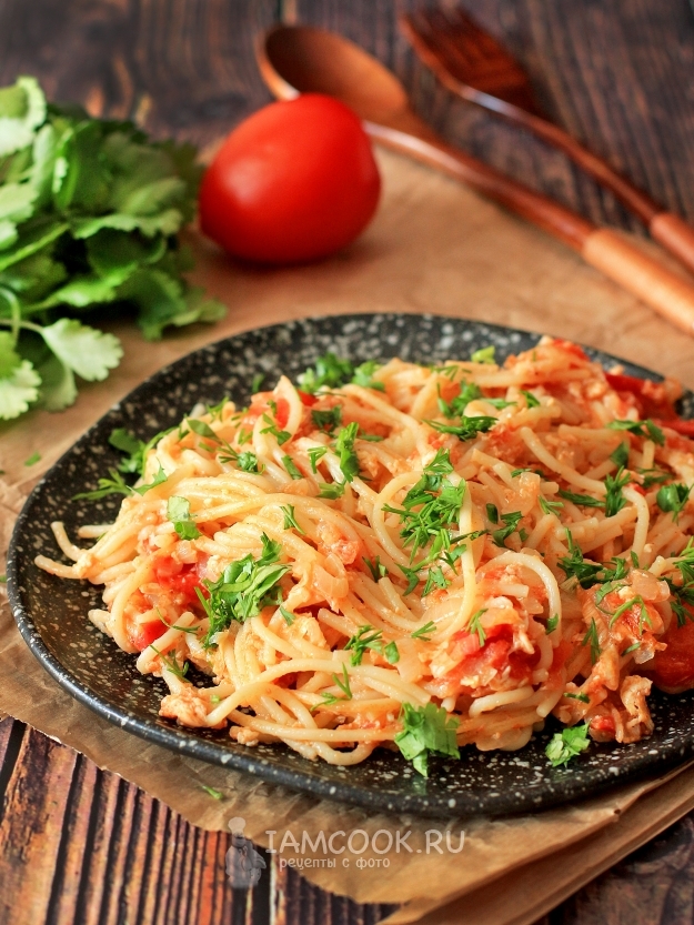 Ничего нового я не покажу, всем давно известны приемлемые сочетания для спагетти, но какая-то изюминка в этом блюде присутствует. Вот знаете, из тех, что кажется, будто знал давно, но как-то подзабыл... Спагетти любят взрослые и дети)), а в век больших скоростей и постоянной нехватки времени данный вариант приготовления - просто находка. К тому же это очень вкусно.