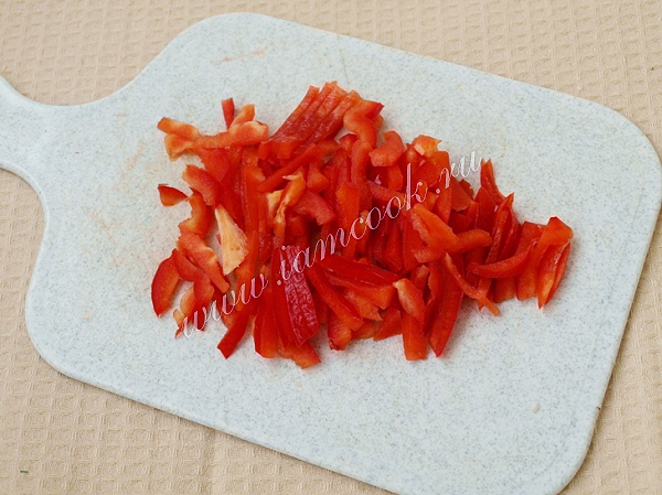 Еще одно фото салата с болгарским перцем и ветчиной.