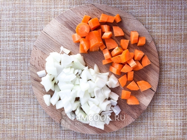 Морковь и лук нарежьте произвольными кусочками.