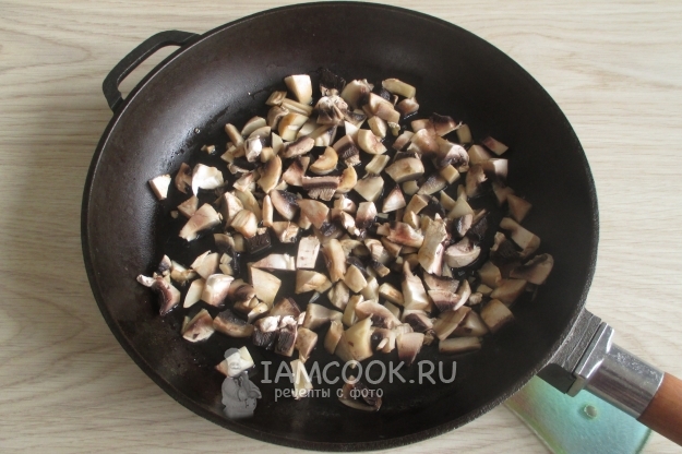 Шампиньоны сразу нарежьте небольшими кусочками.