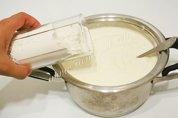 Одной рукой взбивайте, а второй всыпайте сахар. Чем лучше взбиты яйца с сахаром, тем пышнее и лучше получится тесто.
