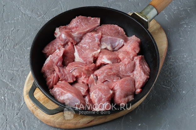 Мясо помыть под проточной водой, тщательно обсушить и нарезать небольшими кусочками одинакового размера. Выложить на сковороду, разогретую с растительным маслом, и обжарить на сильном огне до появления румяной корочки.