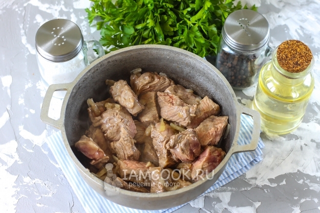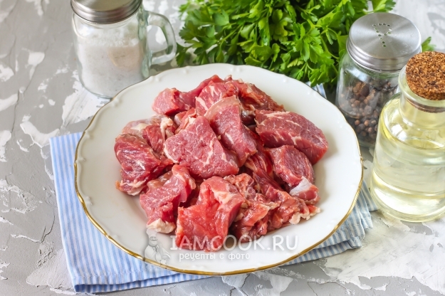 Итак, подготовим необходимые ингредиенты для приготовления тушеной говядины в казане и начнем кулинарить!