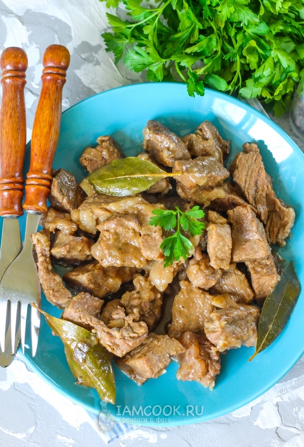 Не все умеют приготовить говядину, чтобы она осталась сочной и буквально таяла во рту. Для этого мясо сначала поджаривают, запечатывая все соки в нарезанных кусочках, затем тушат в небольшом количестве жидкости на умеренном нагреве. Из классических специй добавляют лишь черный молотый перец, соль. Пара-тройка лавровых листьев подарит блюду более яркий аромат, можно всыпать немного сушеного тимьяна, розмарина, но уже в конце приготовления. Кстати, чтобы блюдо получилось мягким и сочным, соль добавляйте непосредственно в конце приготовления.