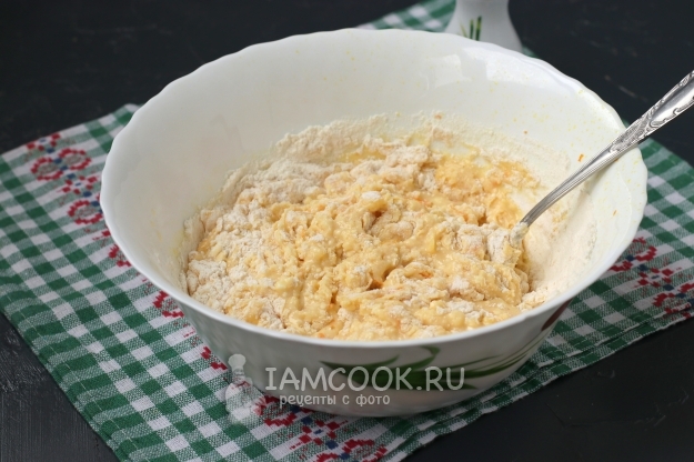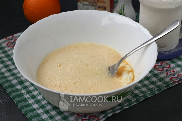 Отдельно взбить яйца и затем соединить их с творожной массой. Растопить и остудить сливочное масло, также добавить его в творожную массу.