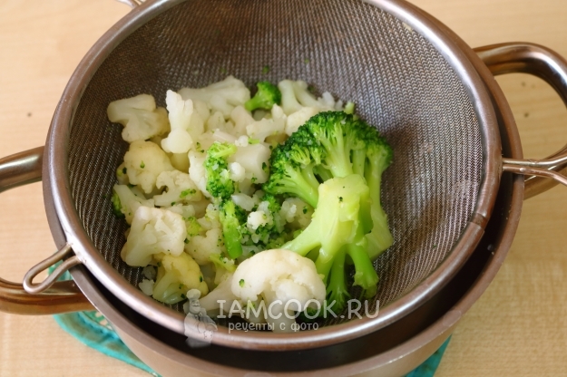 Цветную капусту и брокколи бланшируем в кипящей подсоленной воде 2 минуты.