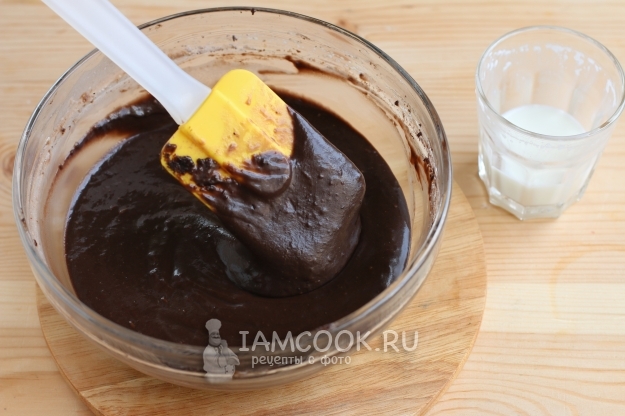 В конце добавляем в тесто молоко, оно должно стать не крутым, и не жидким, а умеренно тягучим.