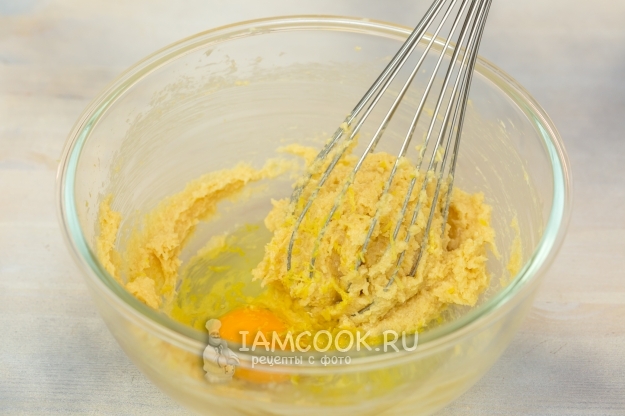 Добавьте лимонную цедру, натертую на мелкой терке, и по одному два яйца, тщательно взбивая после каждого.