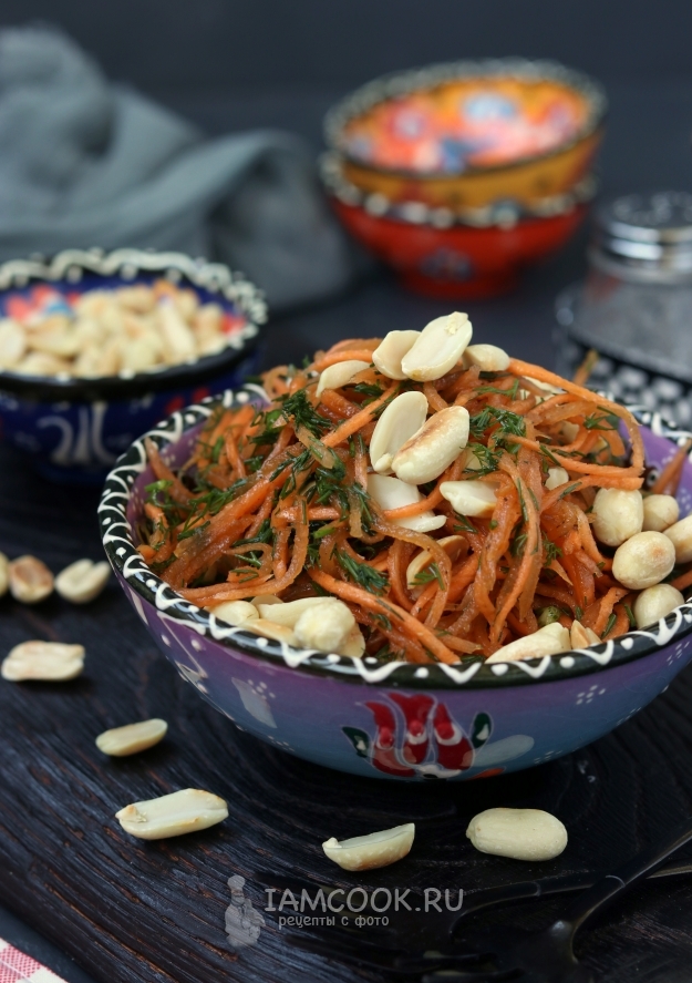 Предлагаю вам замечательный салат из моркови с арахисом в восточном стиле, своего рода альтернатива моркови по-корейски, но с более мягким вкусом. Такой салат очень удобно приготовить заранее, а уже непосредственно перед подачей добавить зелень и поджаренный арахис. Салат подойдёт как для повседневного меню, так и для пикника.
