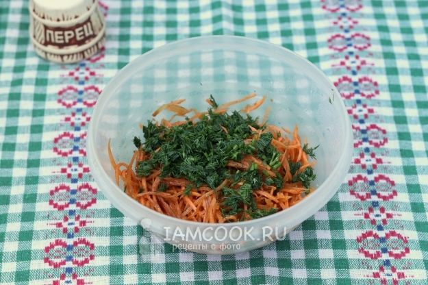 Спустя это время измельчить укроп и добавить его к моркови, перемешать.