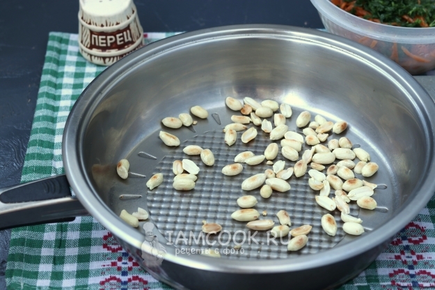 Выложить морковь в подходящий салатник, посыпать сверху поджаренным арахисом. Всё, салат из моркови и арахиса в восточном стиле готов. Подать его к столу.
